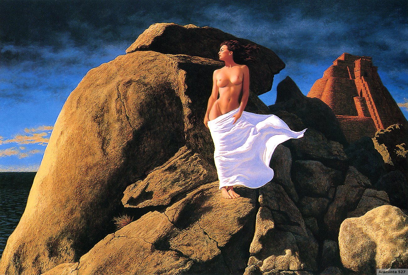 Скачать обои для рабочего стола Обнаженная на скале и фото