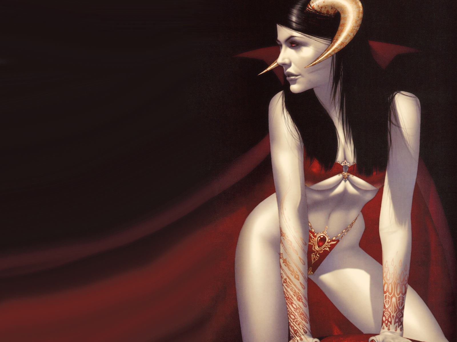 Скачать обои для рабочего стола Очаровательная девушка с рогами и фото