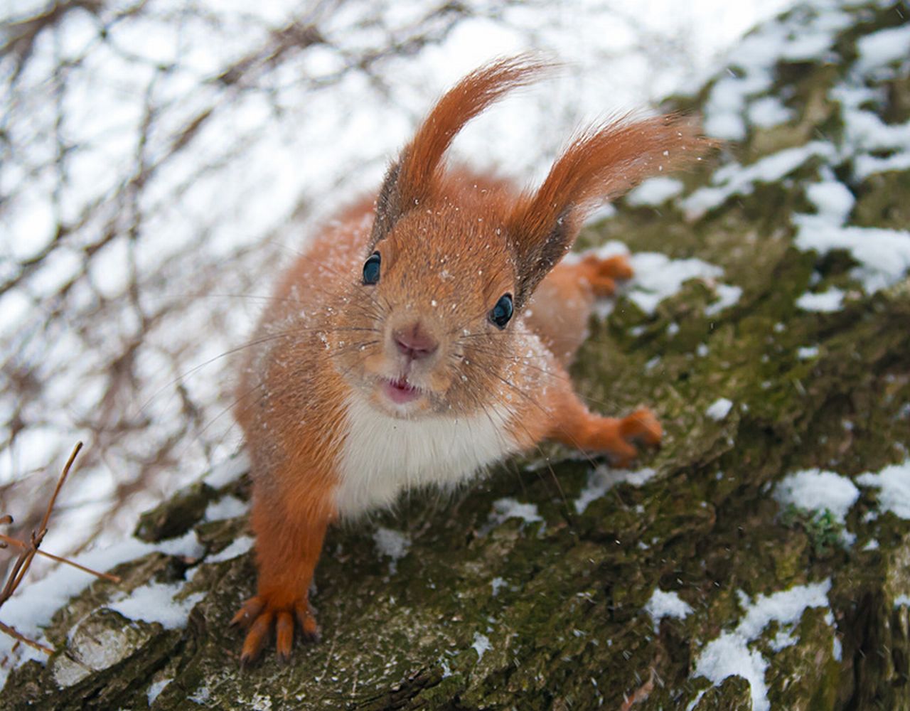 Скачать обои для рабочего стола Очень любопытная белочка и фото