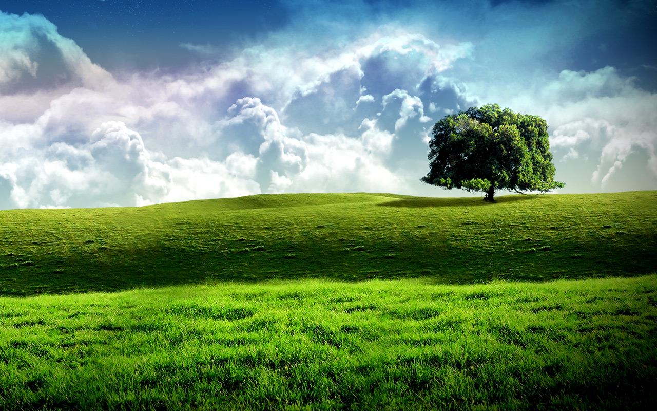 Скачать обои для рабочего стола Одиннокое дерево на лугу и фото