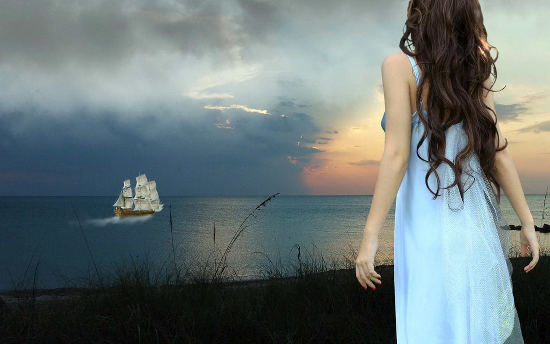 Похожие обои на Одинокая девушка у моря: