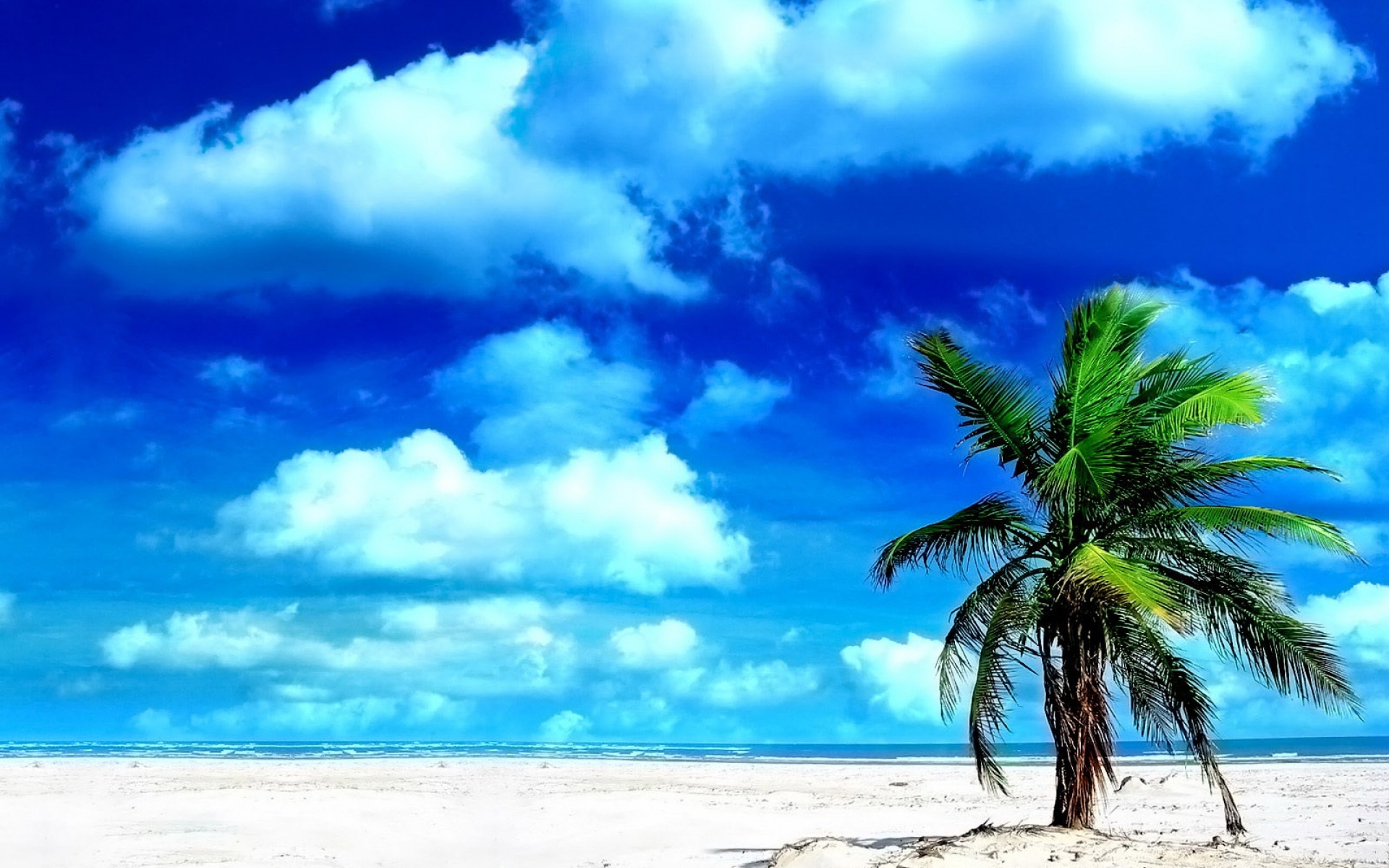 Скачать обои для рабочего стола Одинокая пальма на белом песчаном берегу и фото
