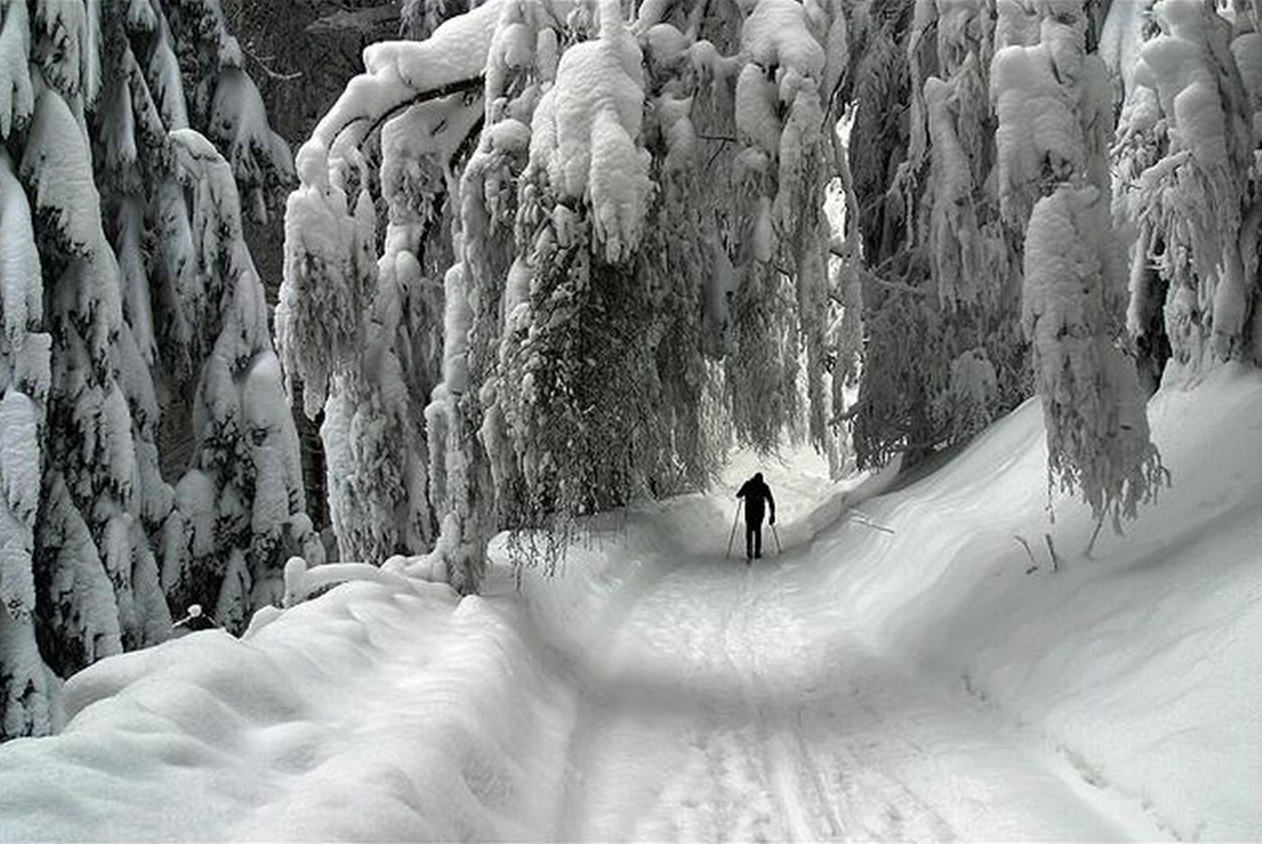 Скачать обои для рабочего стола Одинокий лыжник и фото