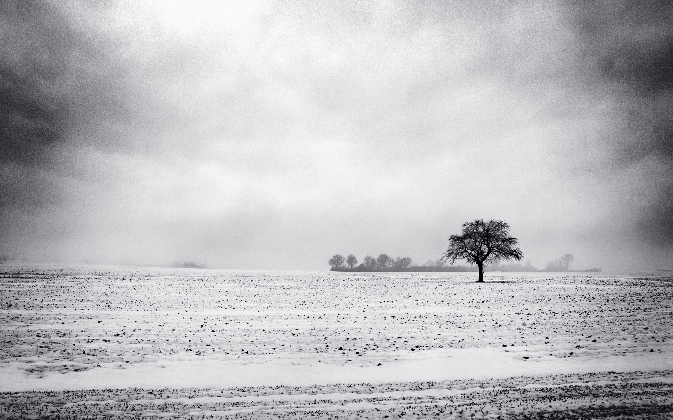 Скачать обои для рабочего стола Одинокое дерево в поле зимой и фото