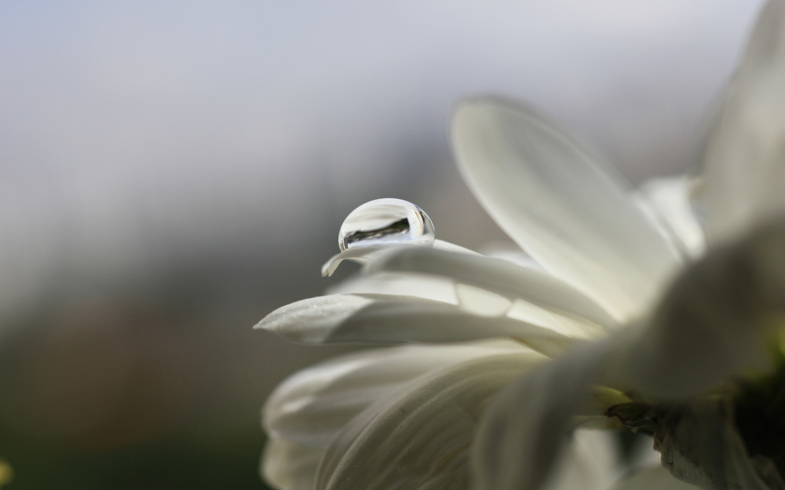 Скачать обои для рабочего стола Одна капелька на белом лепестке и фото