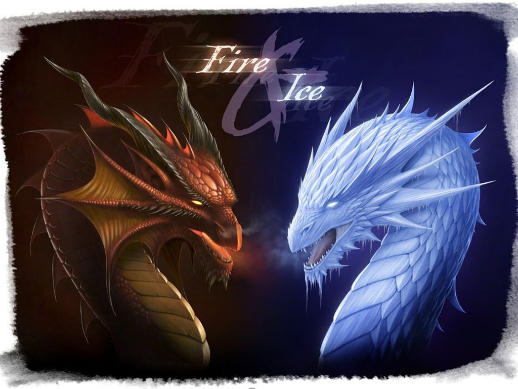 Скачать обои для рабочего стола Огненный и ледяной драконы и фото