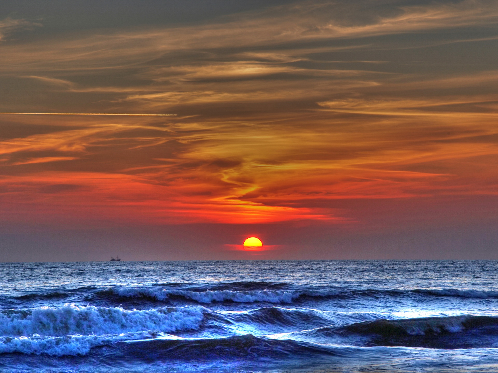 Скачать обои для рабочего стола Океан на фоне заката и фото
