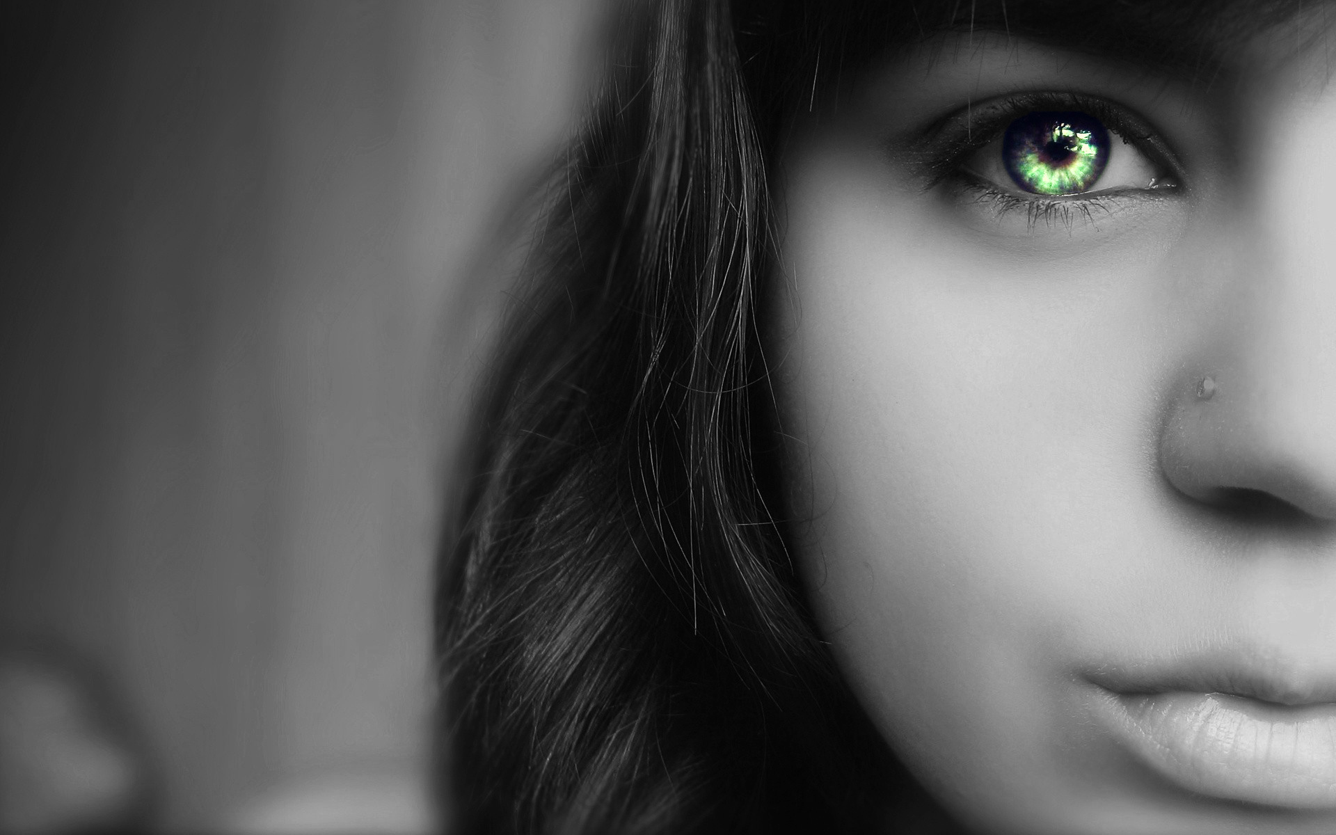Скачать обои для рабочего стола Омут зеленых глаз девушки с пирсингом и фото