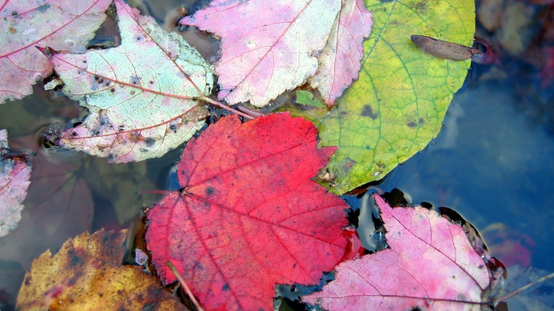 Обои Опавшие осенние листья на воде