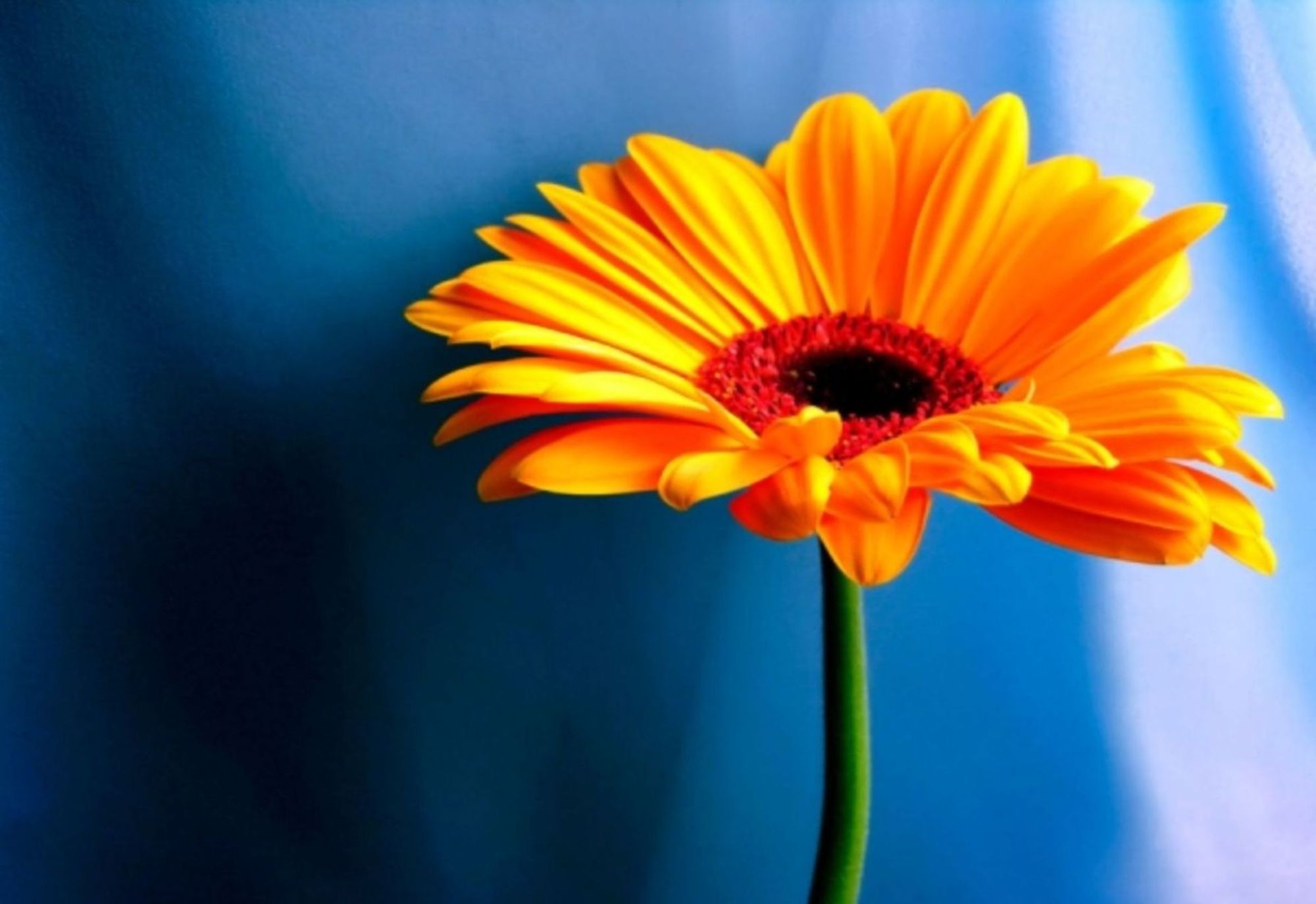 Похожие обои на Оранжевый цветок на синем фоне: