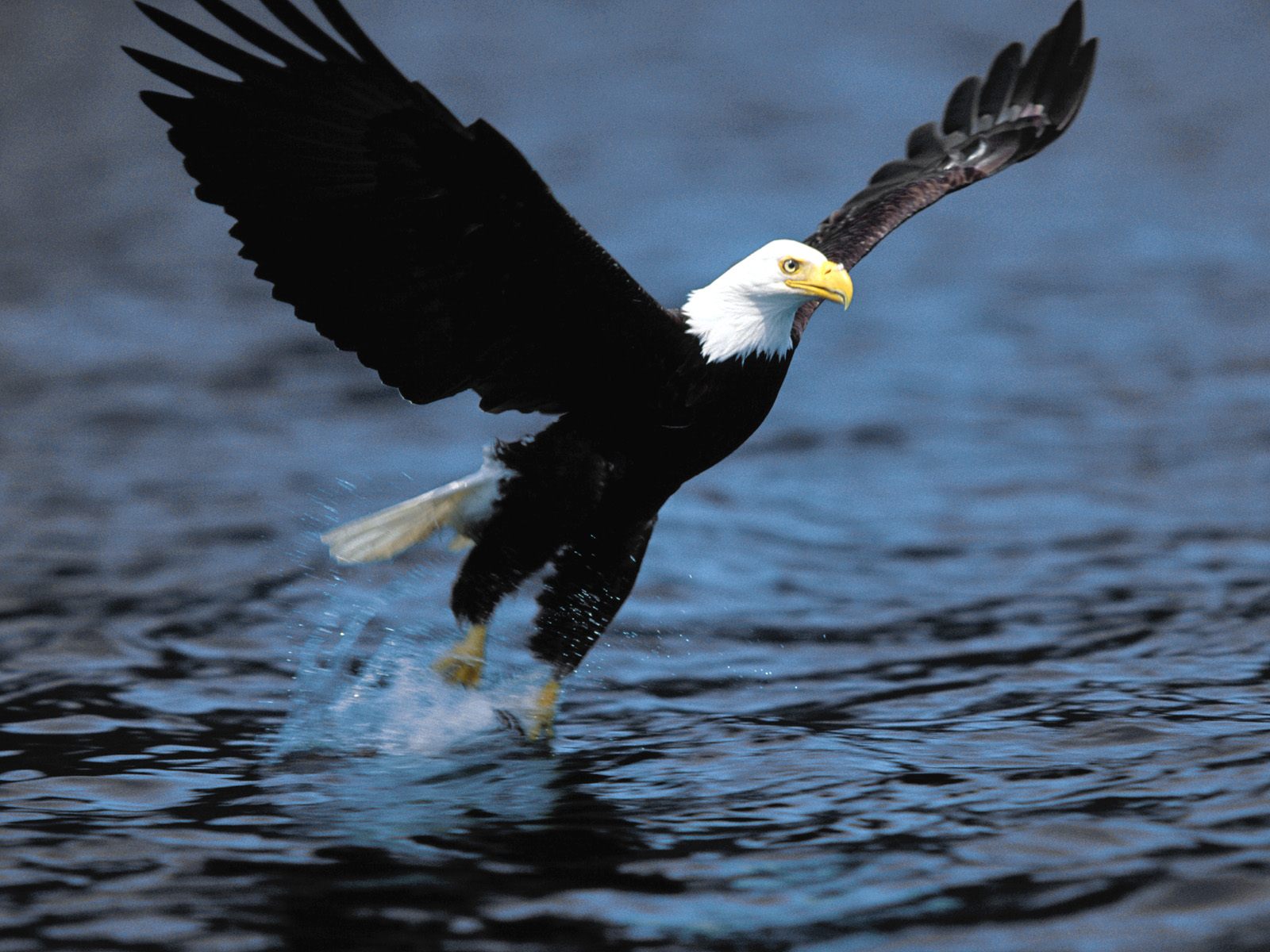 Скачать обои для рабочего стола Орел устроил рыбную ловлю и фото