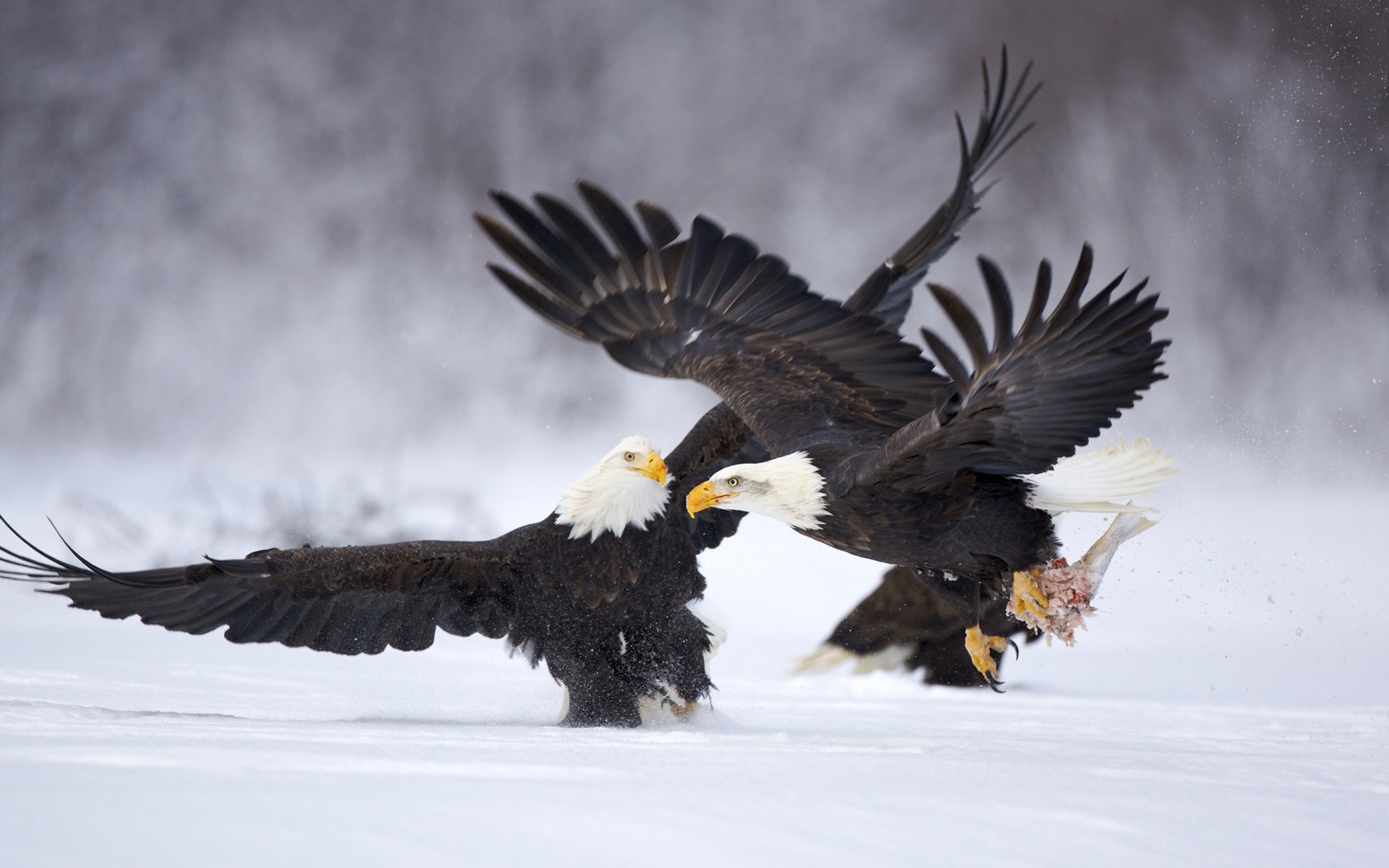 Скачать обои для рабочего стола Орлы спустились на снег и фото