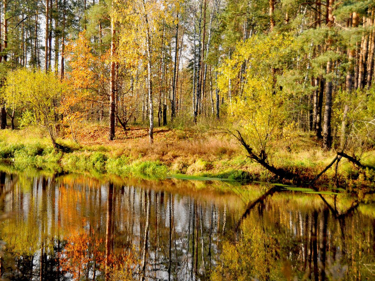 Скачать обои для рабочего стола Осень на маленькой речке и фото