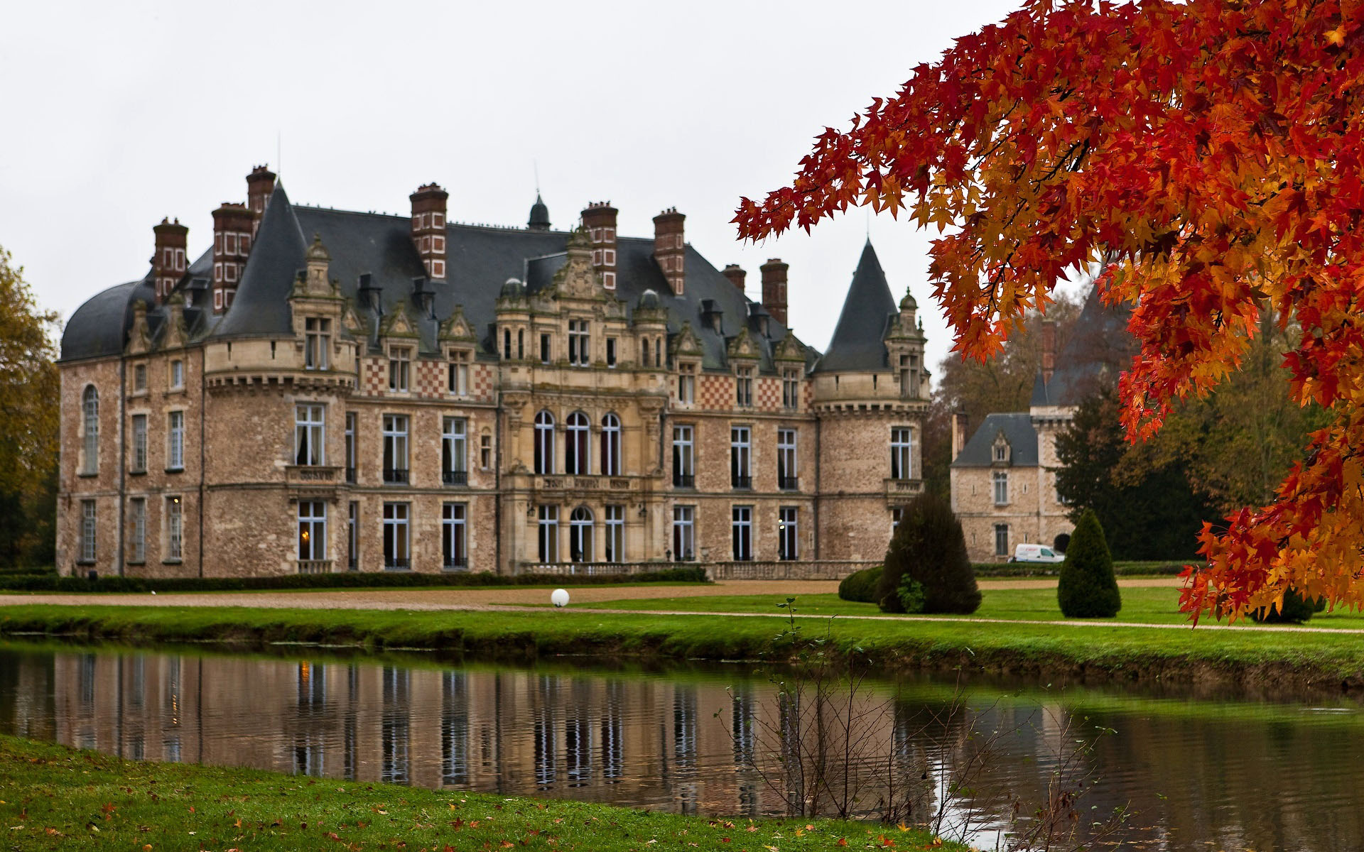 Скачать обои для рабочего стола Осень пруд и замок и фото