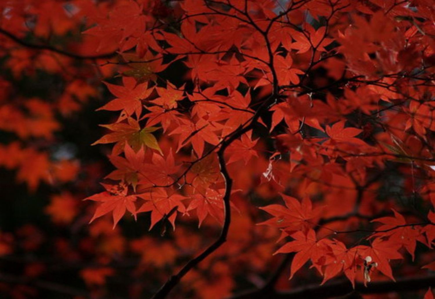 Скачать обои для рабочего стола Осень вечерняя, веточка красная и фото