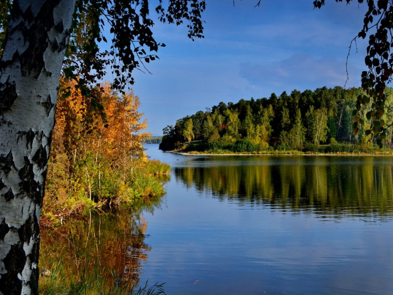 Скачать обои для рабочего стола Осеннее утро на озере и фото