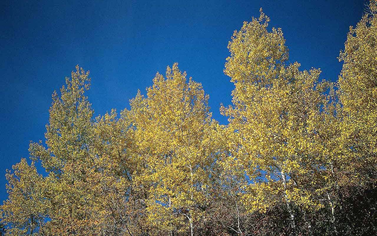 Скачать обои для рабочего стола Осенние березы на фоне неба и фото