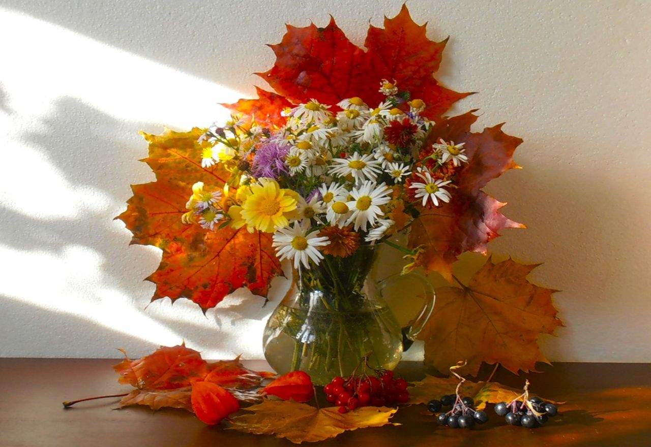 Похожие обои на Осенние листья, цветы и ягоды: