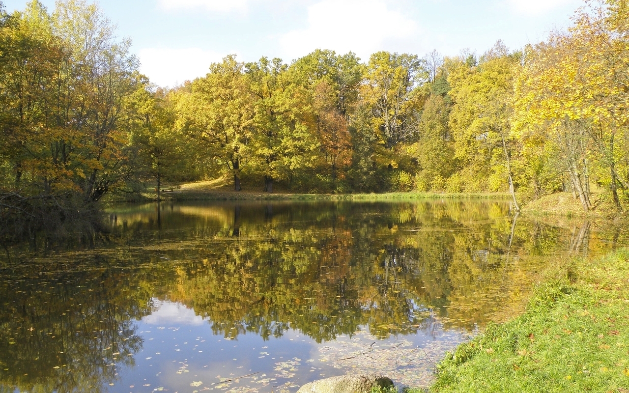 Скачать обои для рабочего стола Осенние листья в реке и фото
