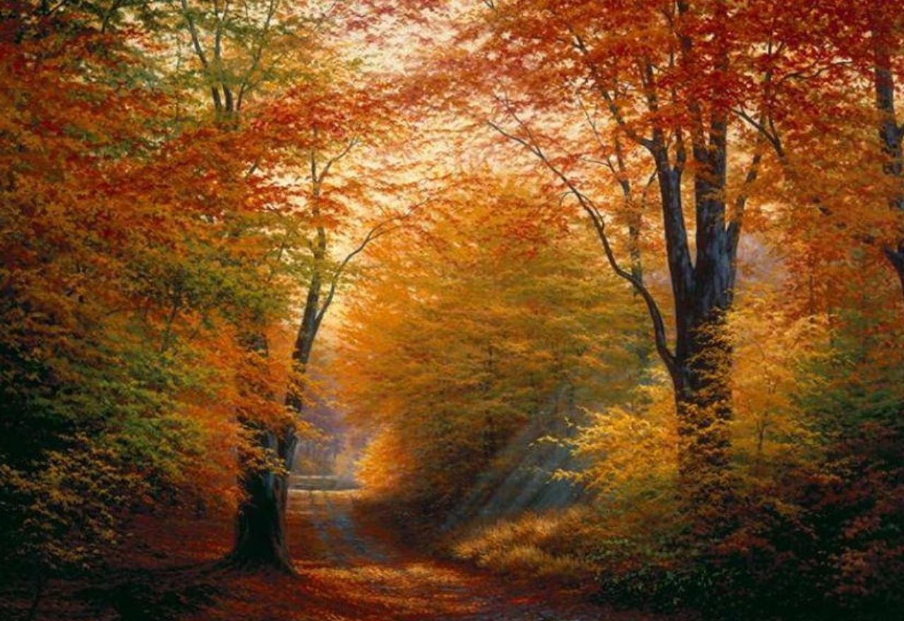 Похожие обои на Осенний лес и дорога:
