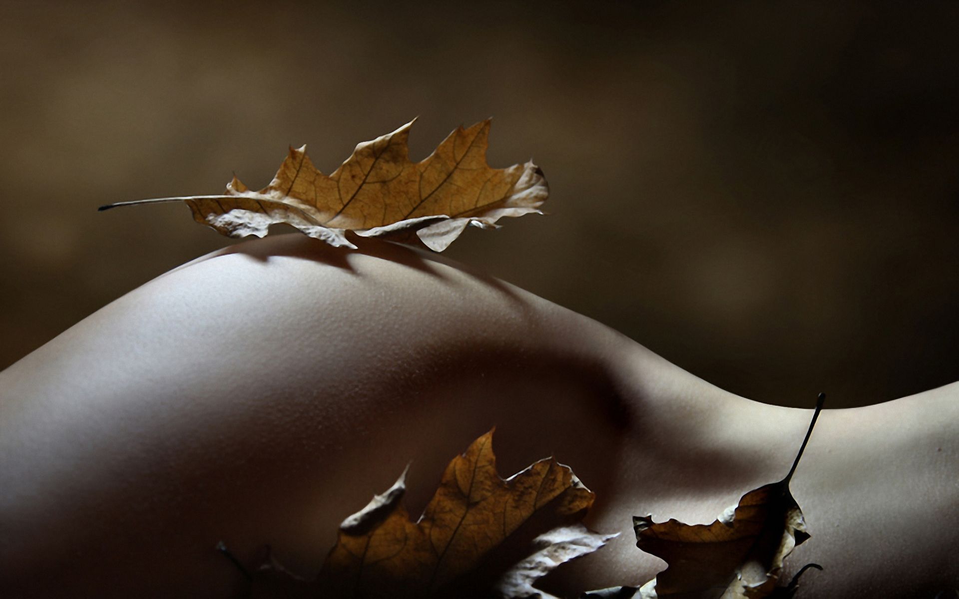 Скачать обои для рабочего стола Осенний лист на бедре и фото