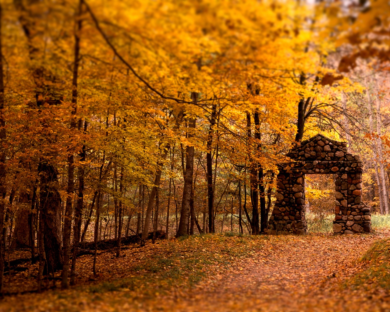 Скачать обои для рабочего стола Осенния арка в лесу и фото