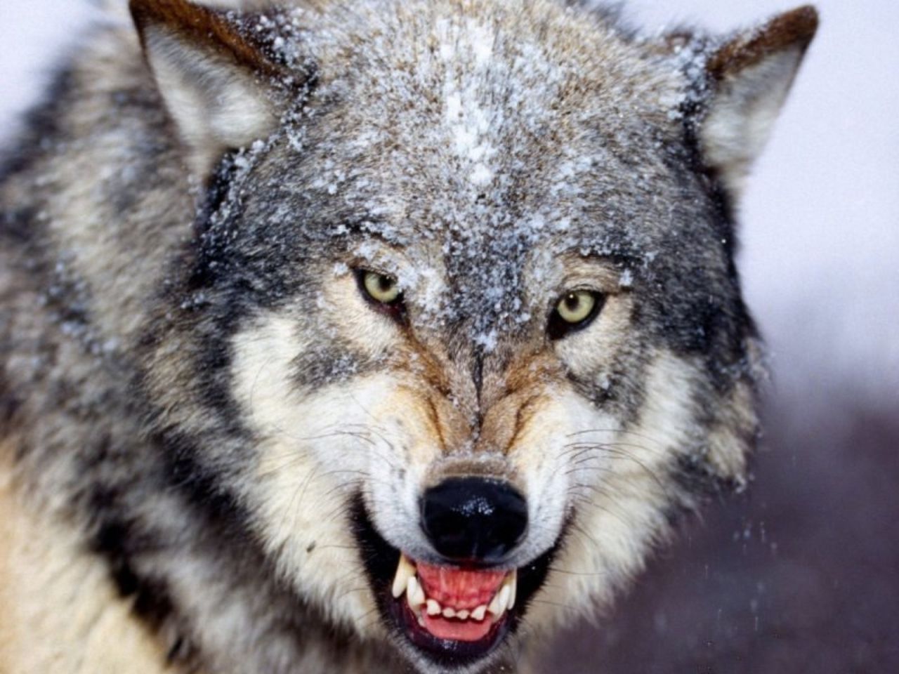Скачать обои для рабочего стола Оскал серового волка и фото