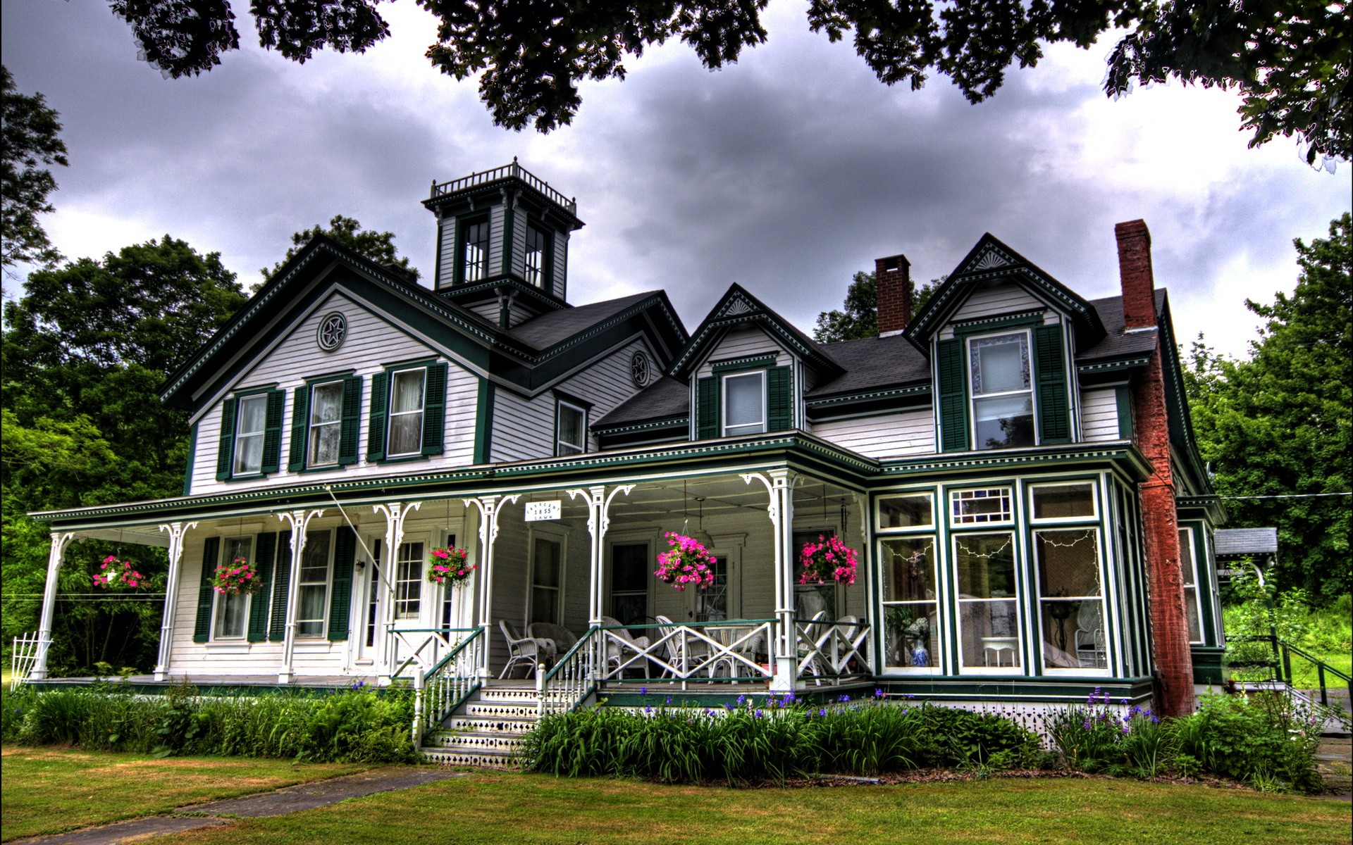 Скачать обои для рабочего стола Особняк с цветами на террасе и фото