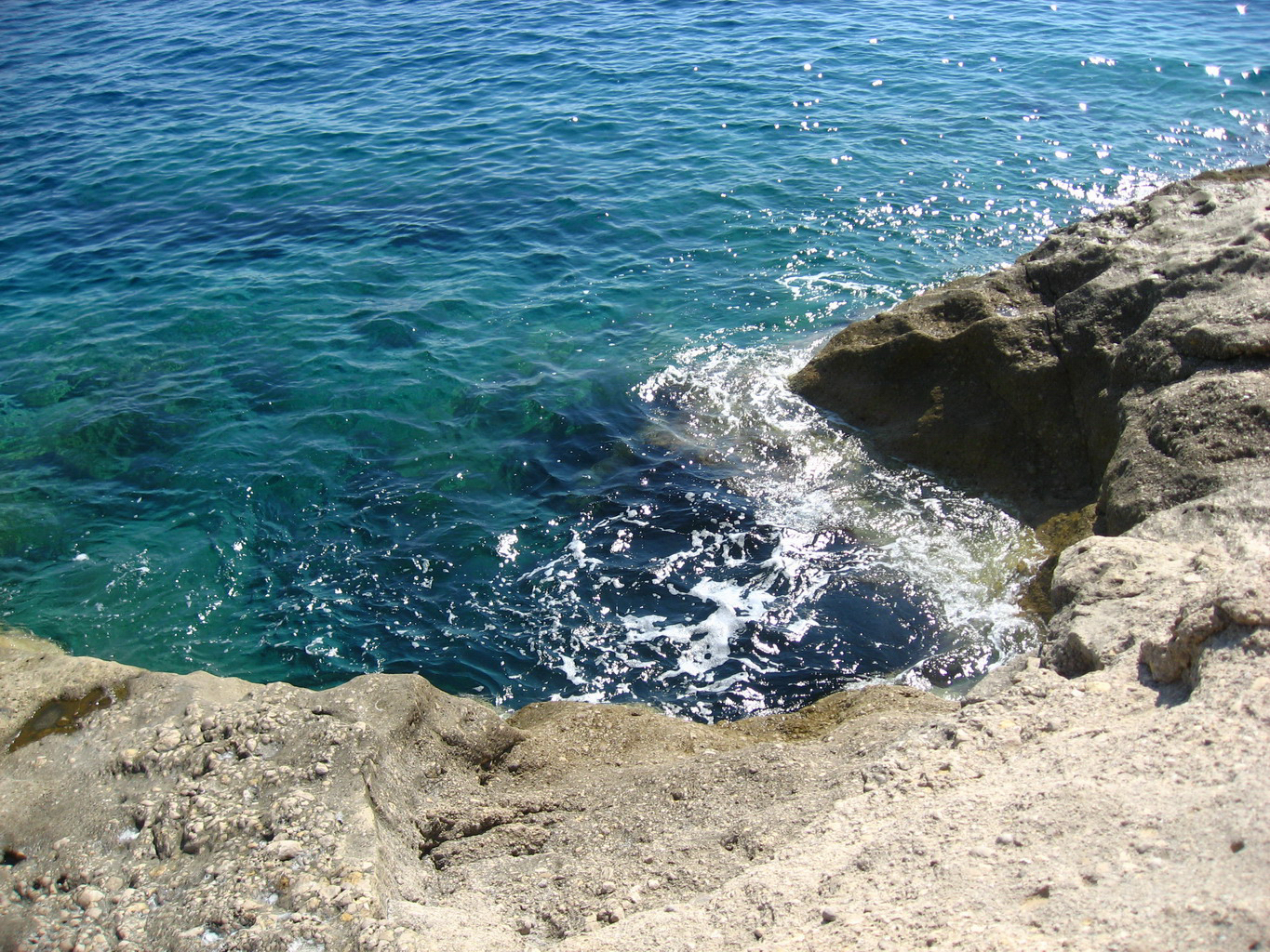 Скачать обои для рабочего стола Отблески солнца в море, у камней и фото