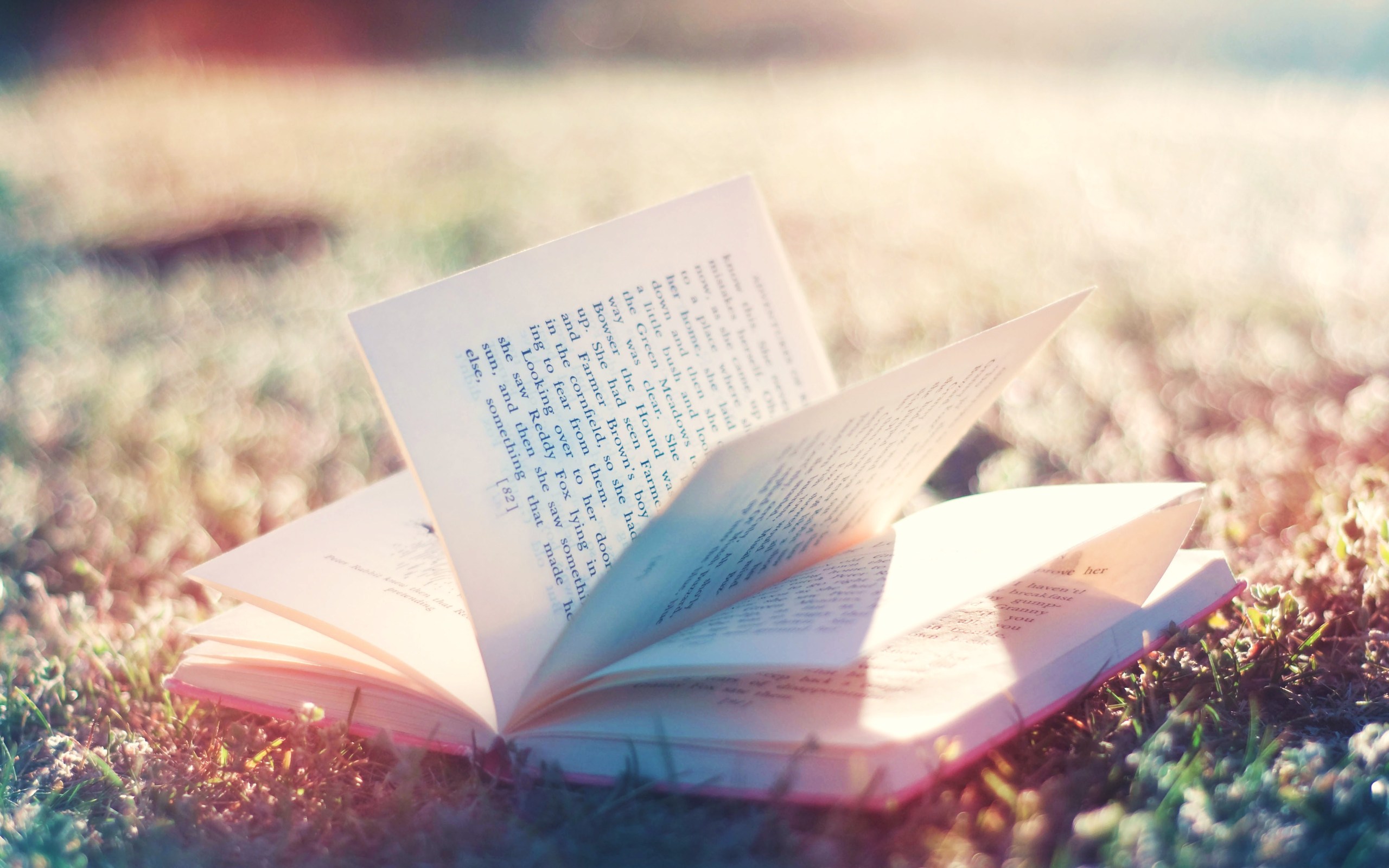 Скачать обои для рабочего стола Открытая книгa на траве и фото
