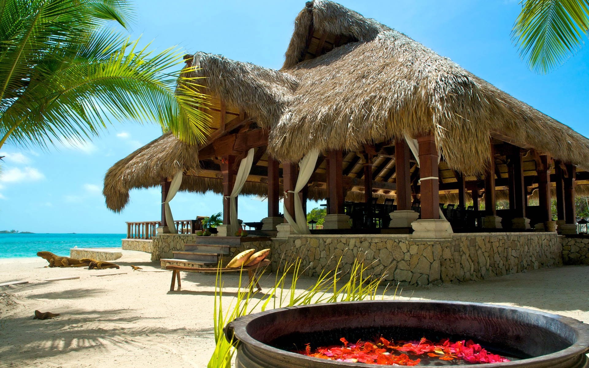 Скачать обои для рабочего стола Открытое помещение со столом и стульями и фото