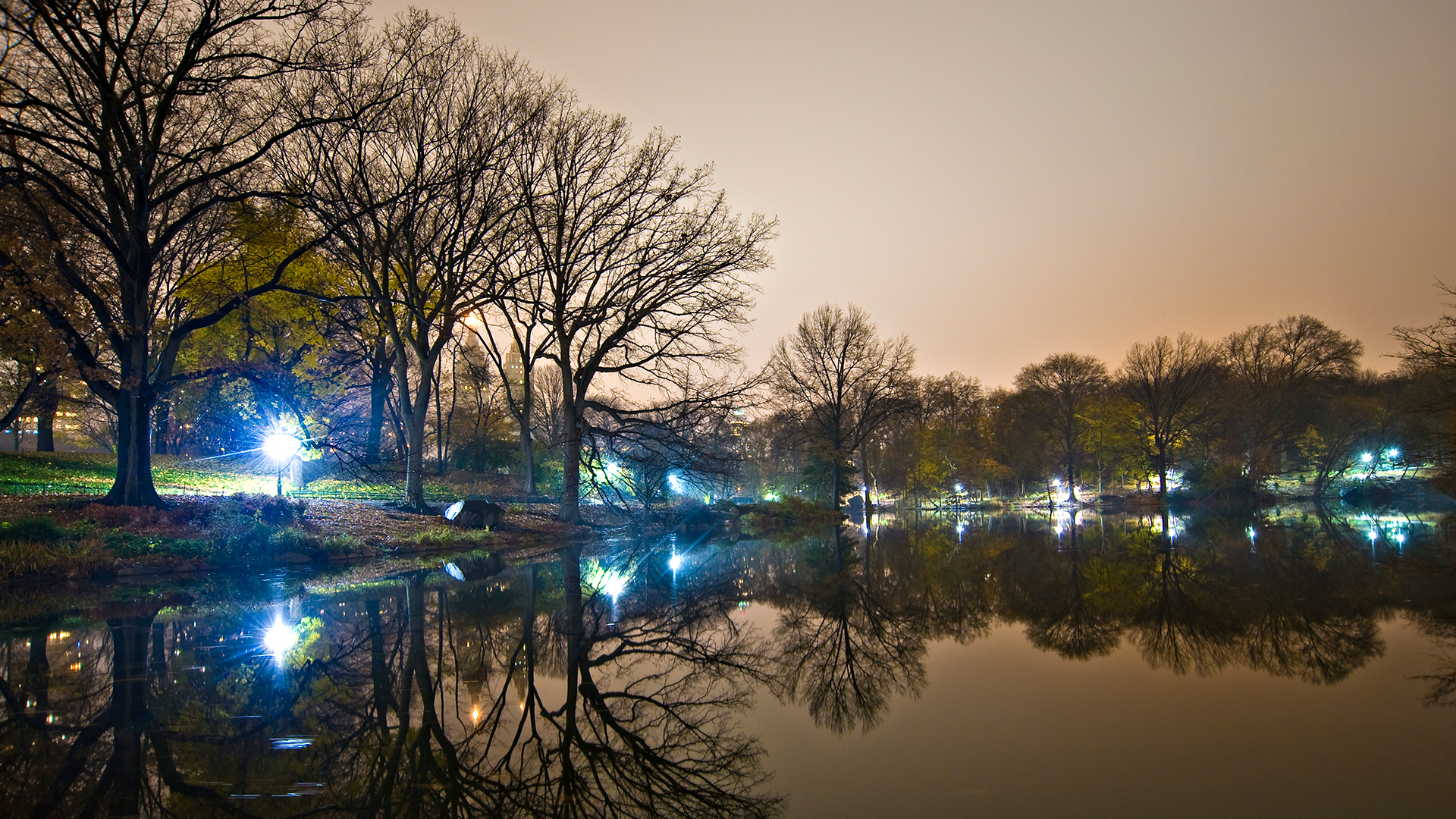 Скачать обои для рабочего стола Отражение городского парка и фото
