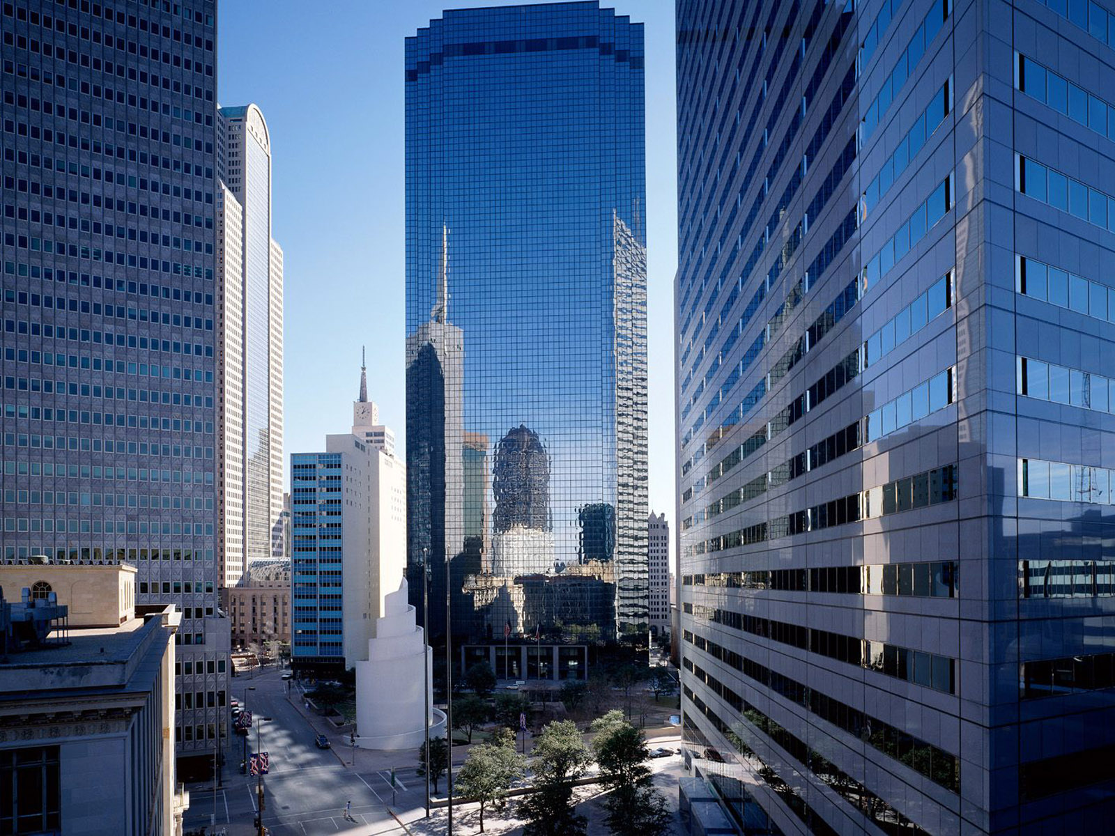 Скачать обои для рабочего стола Отражение небоскребов и фото