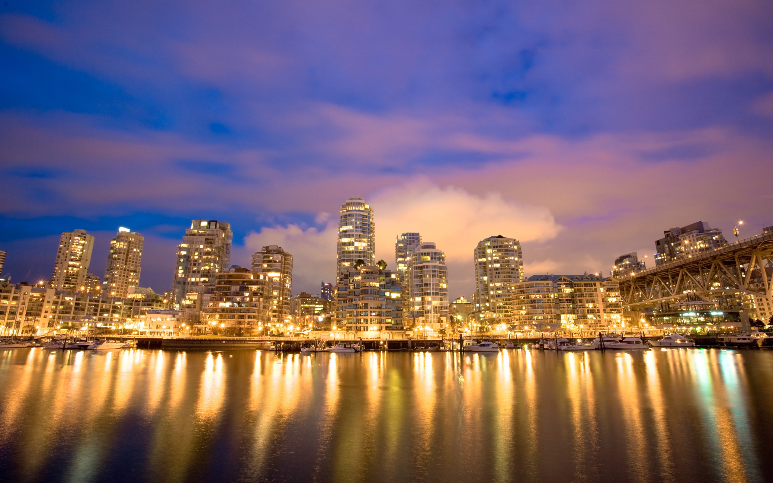 Скачать обои для рабочего стола Отражение ночного города в воде и фото