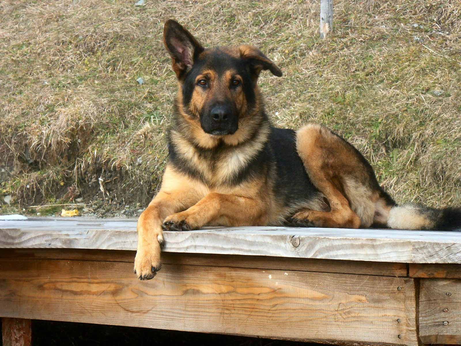 Скачать обои для рабочего стола овчарка на скамейке и фото