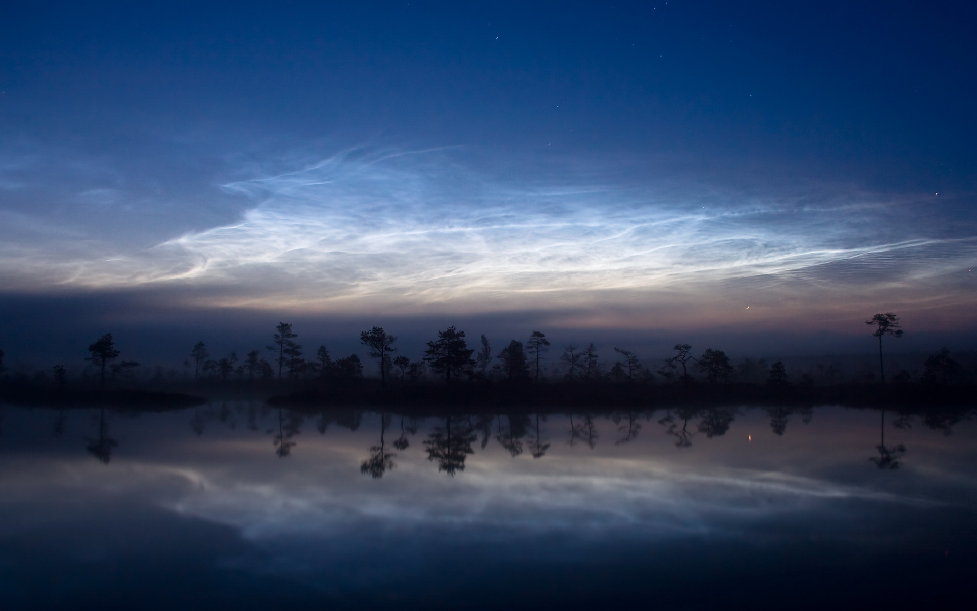 Скачать обои для рабочего стола Озеро, берег в ночном тумане и фото