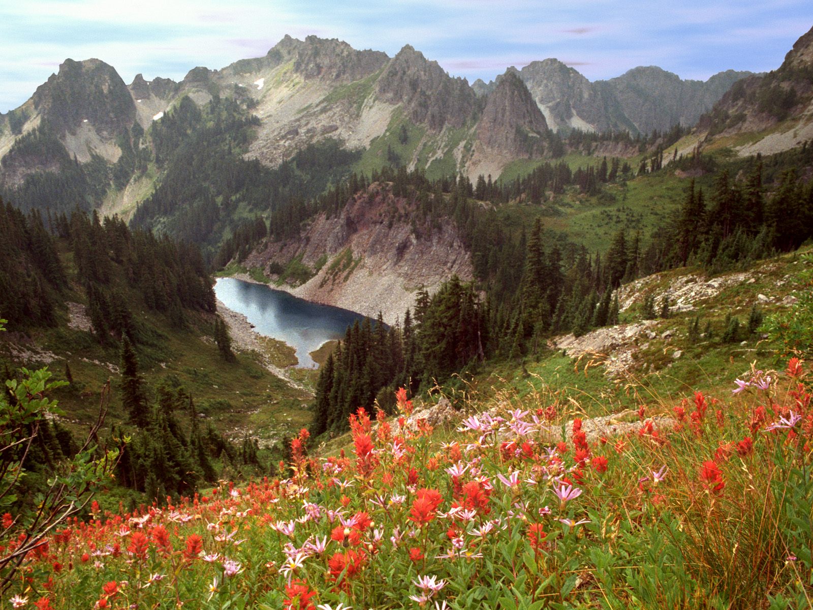 Скачать обои для рабочего стола Озеро средь скал и фото