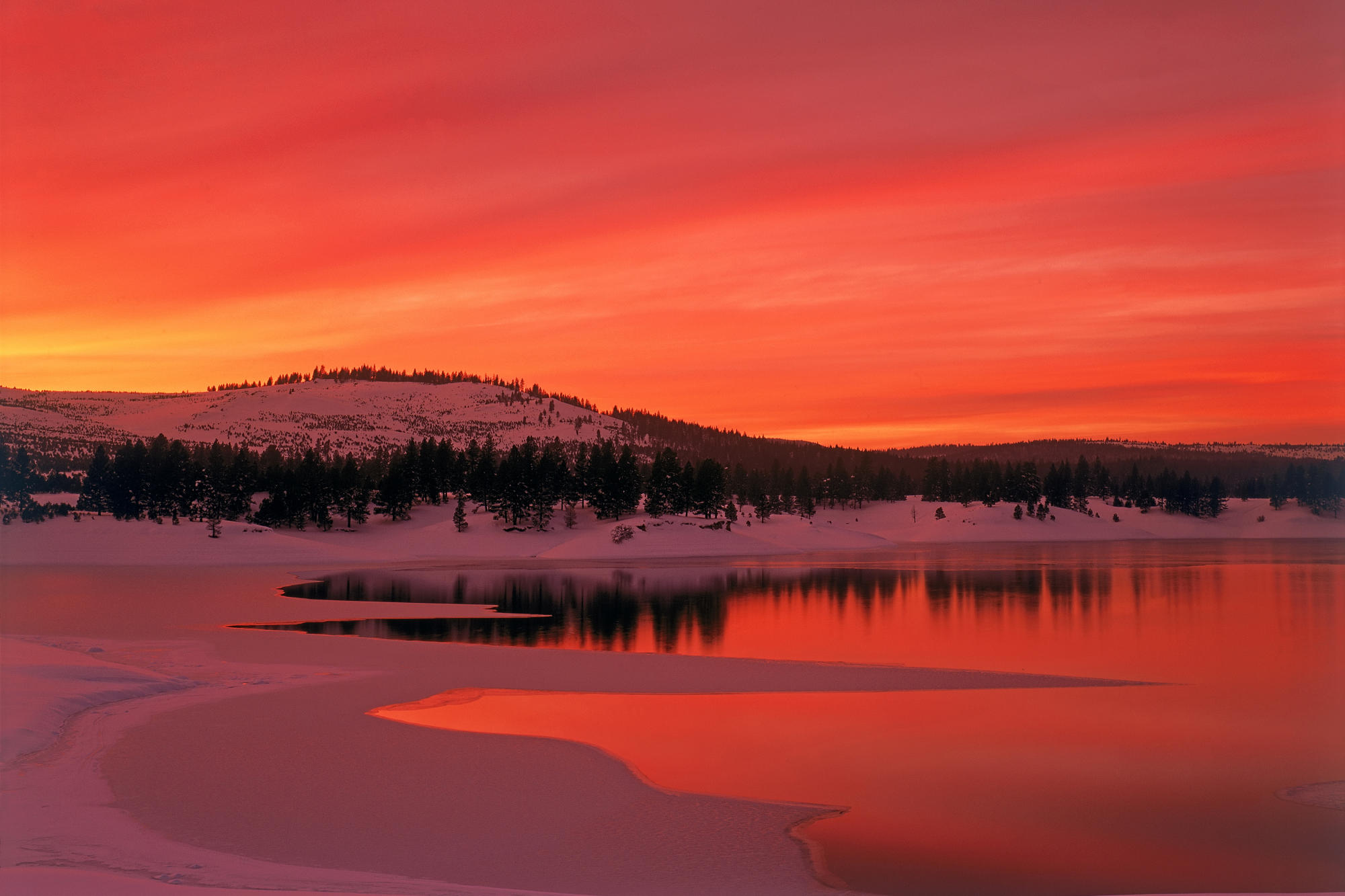 Скачать обои для рабочего стола Озеро в красных цветах и фото