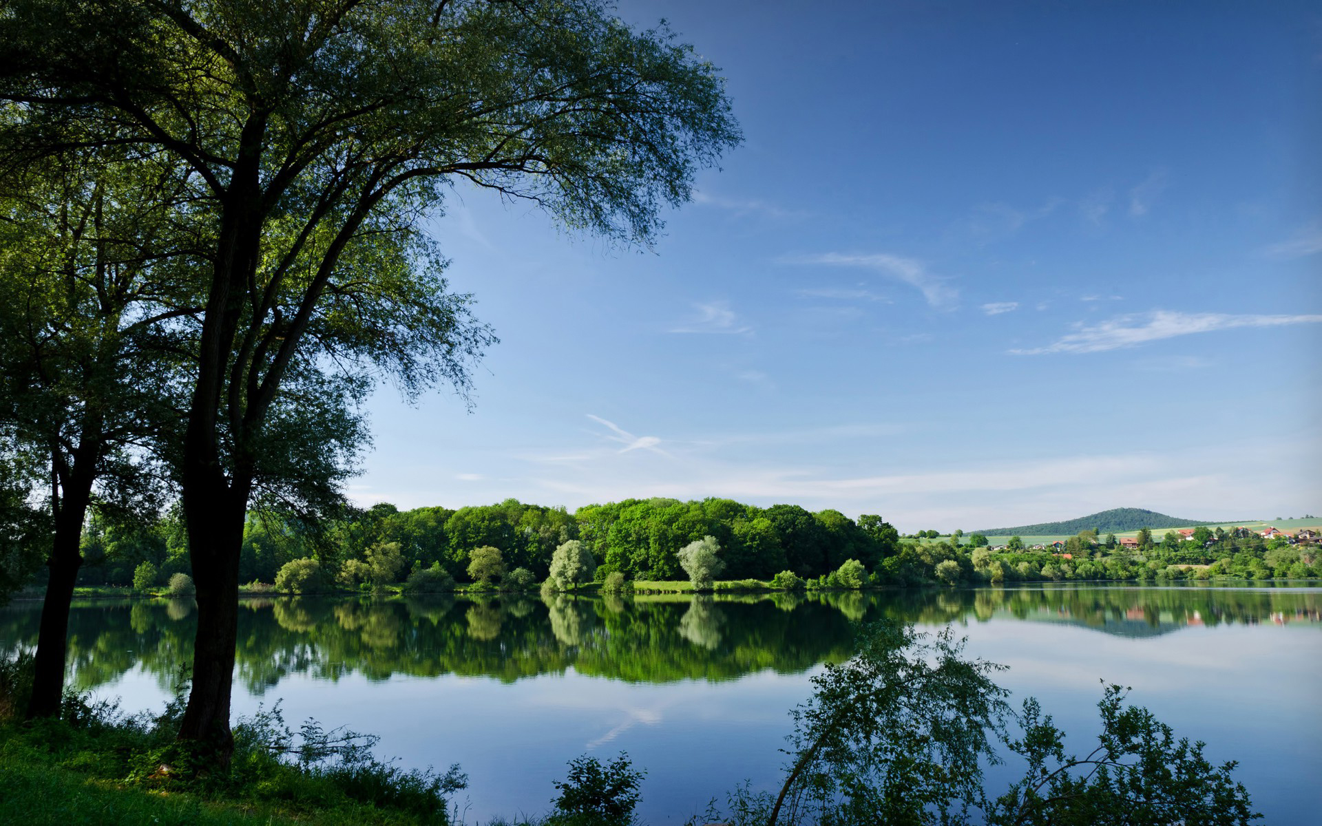 Скачать обои для рабочего стола Озеро в зеленом лесу и фото