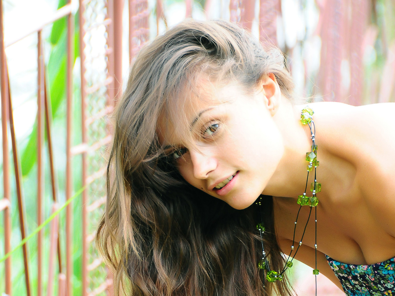 Скачать обои для рабочего стола Озорной взгляд девушки с родинкой около губ и фото