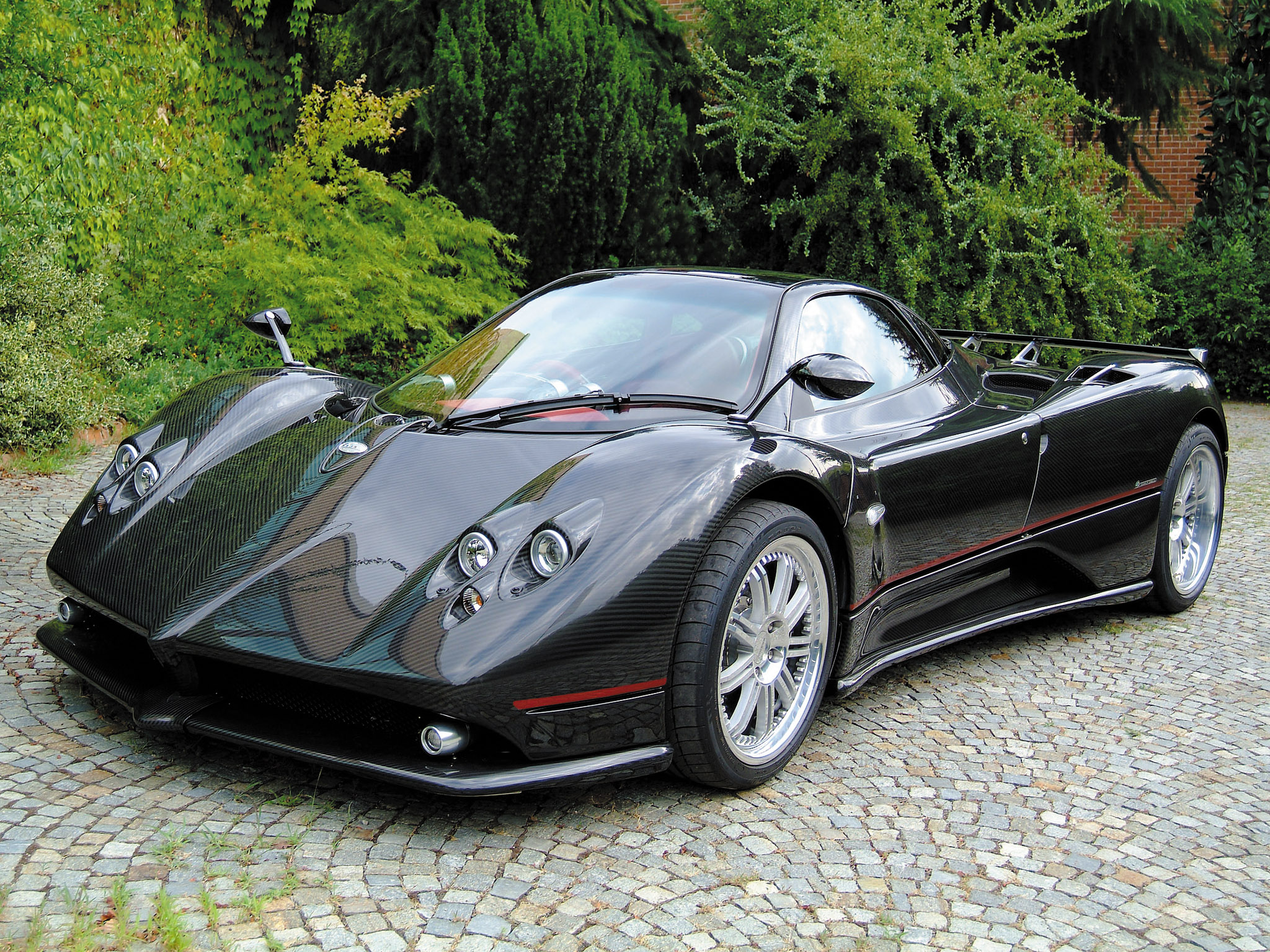 Скачать обои для рабочего стола Pagani Zonda F 2005 черная боком и фото