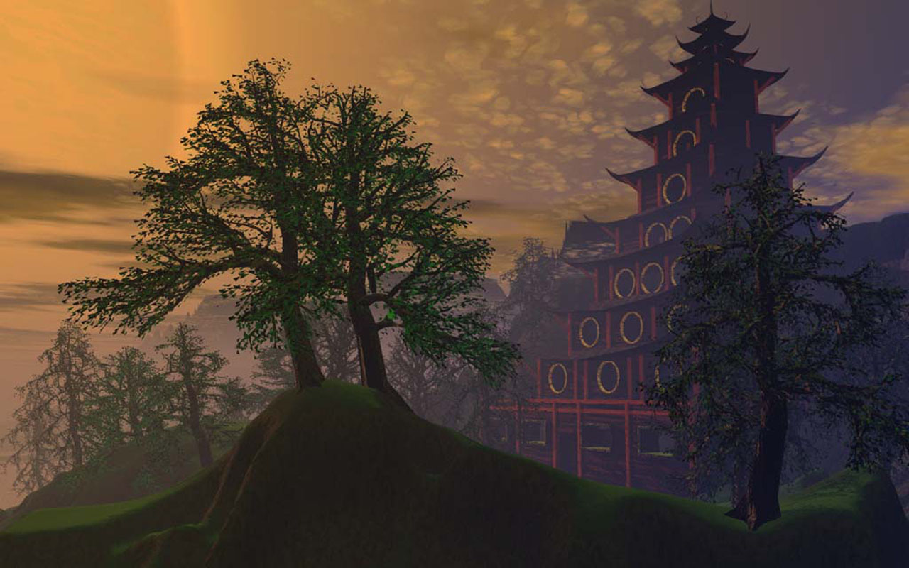 Скачать обои для рабочего стола Пагода в тумане и фото