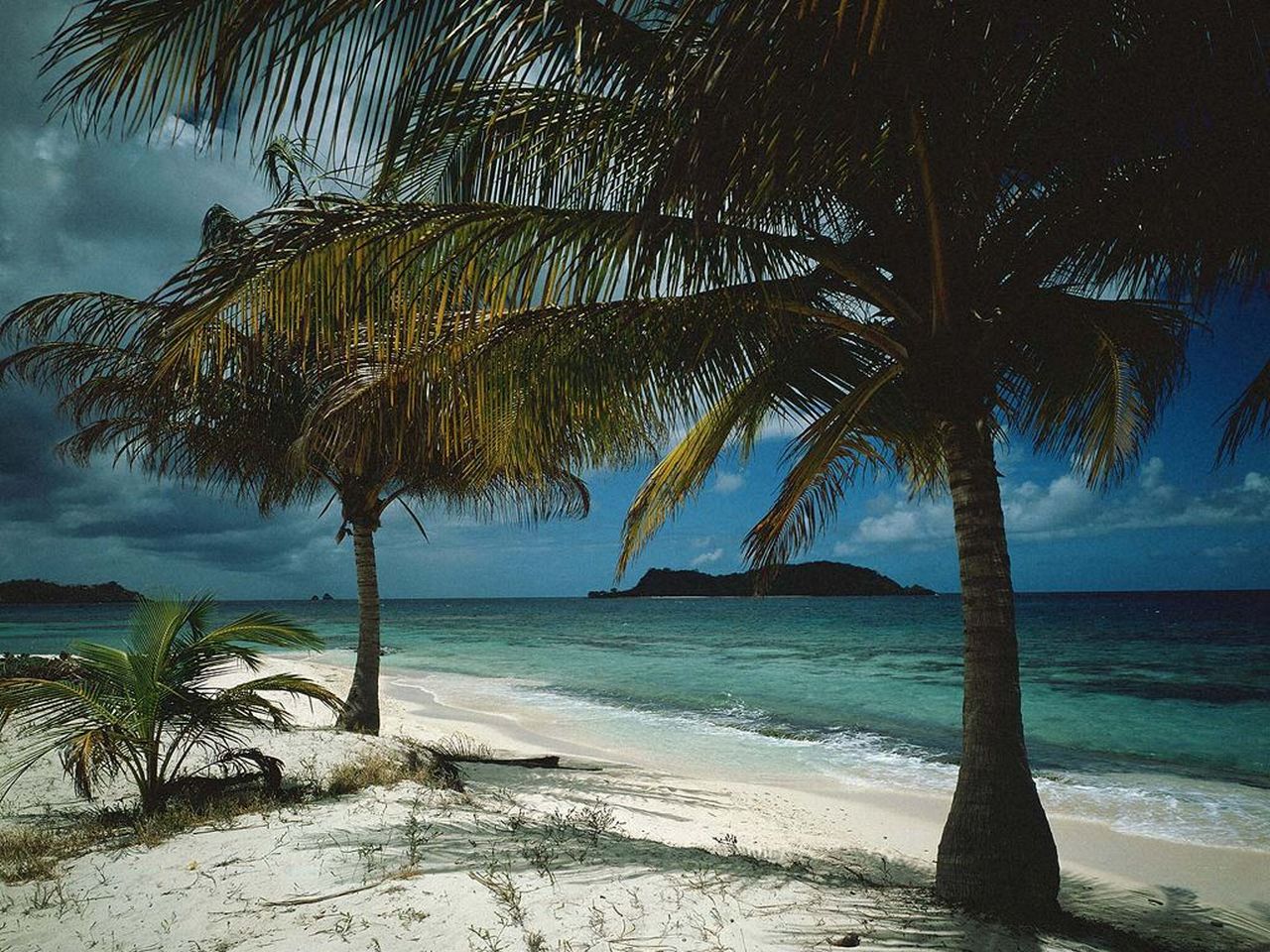 Скачать обои для рабочего стола Пальмы на пляжу и фото