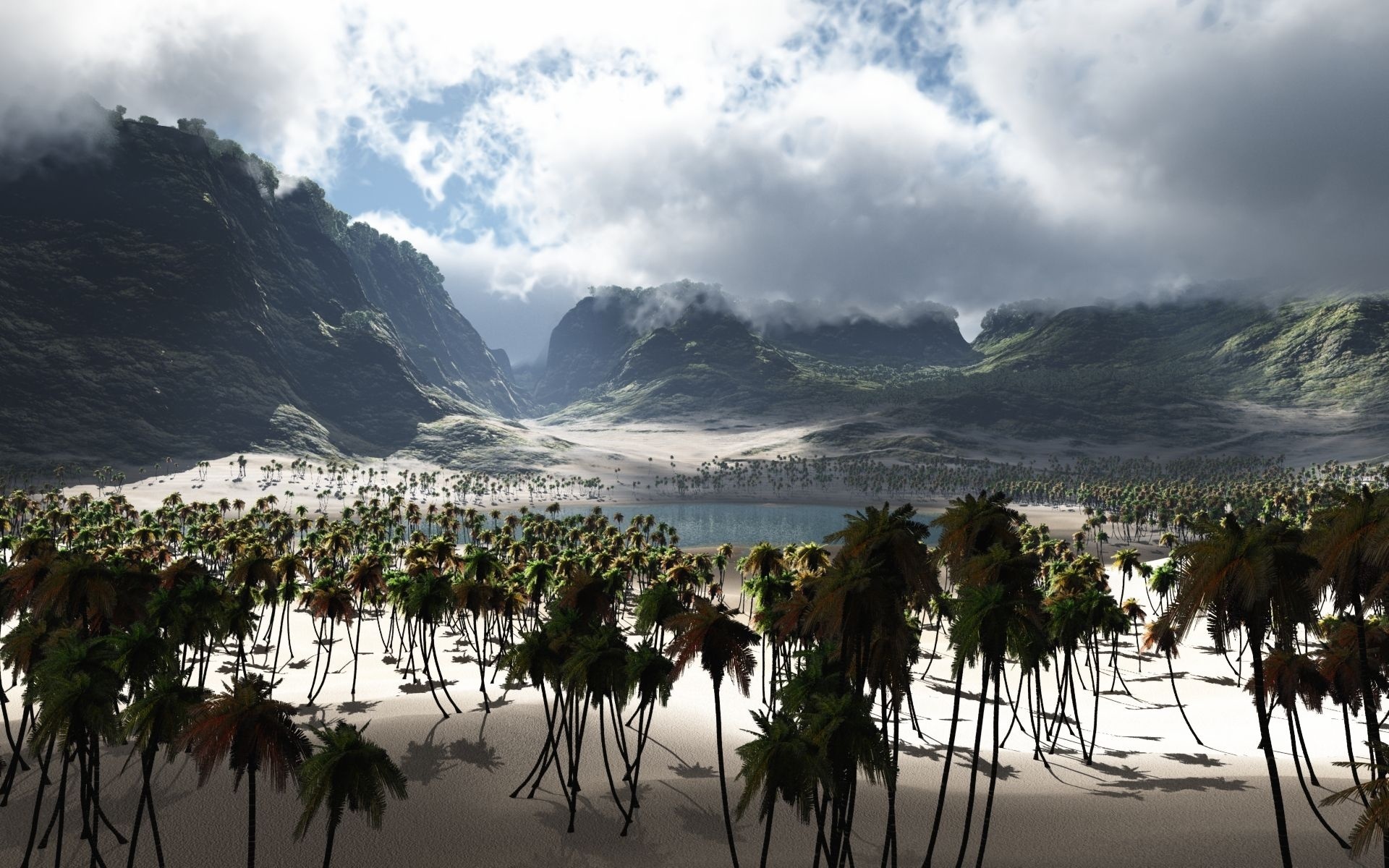 Скачать обои для рабочего стола Пальмы вокруг оазиса и фото