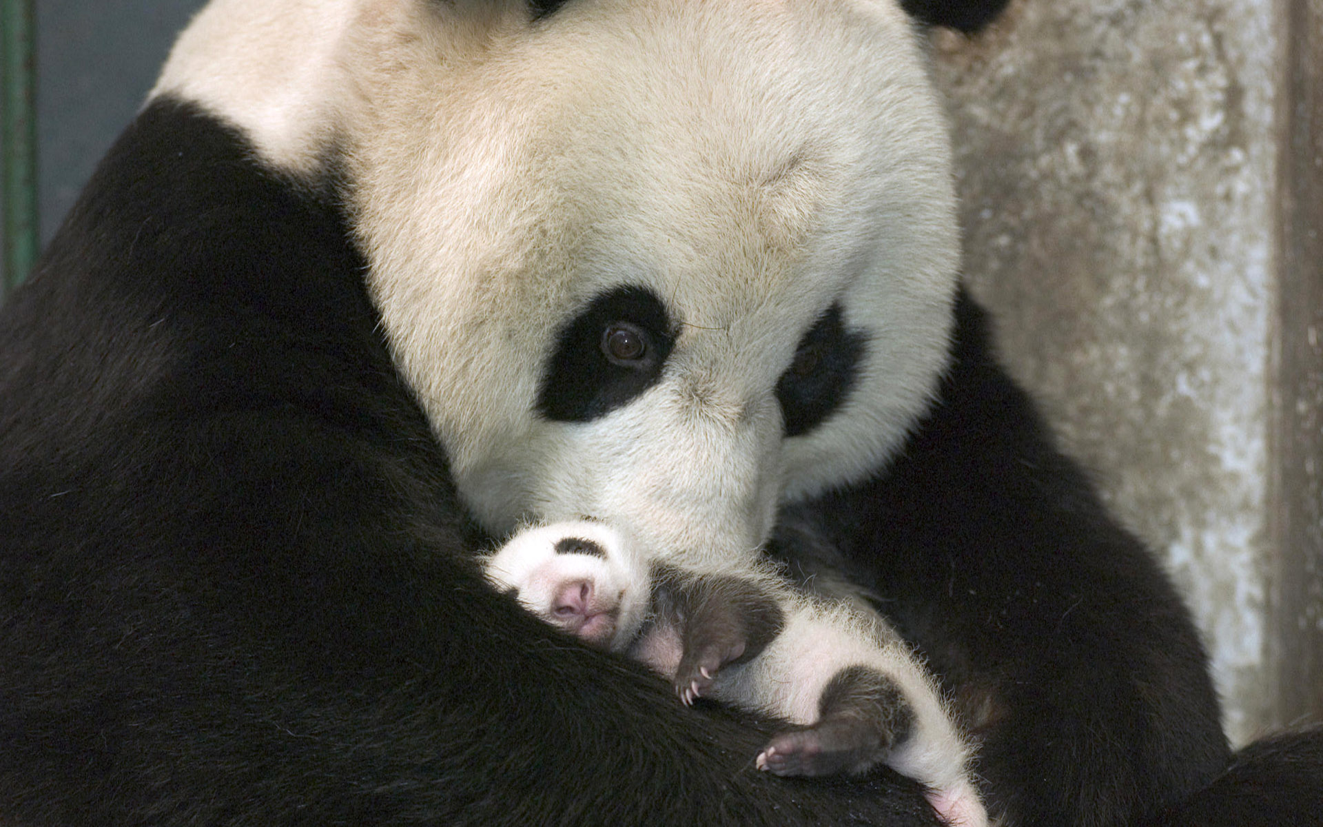 Скачать обои для рабочего стола Панда с детенышем на руках и фото