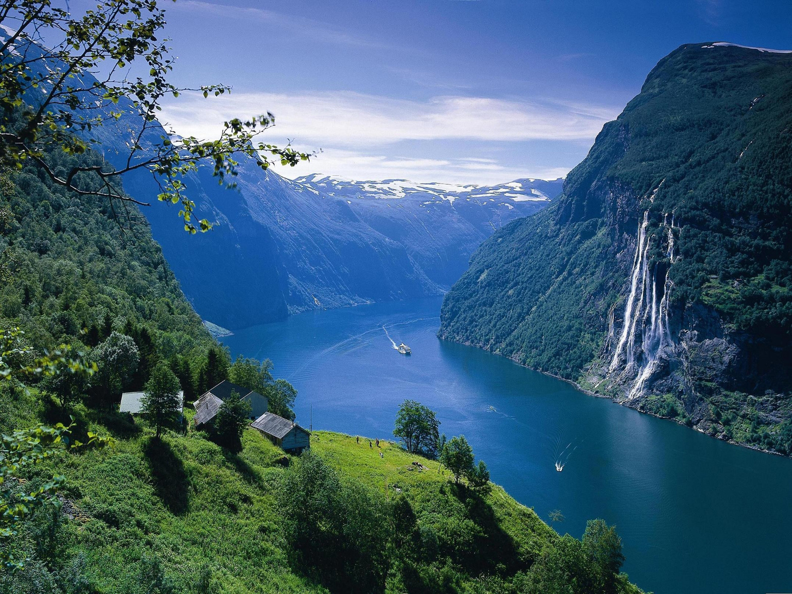 Скачать обои для рабочего стола Панорама реки между гор и фото