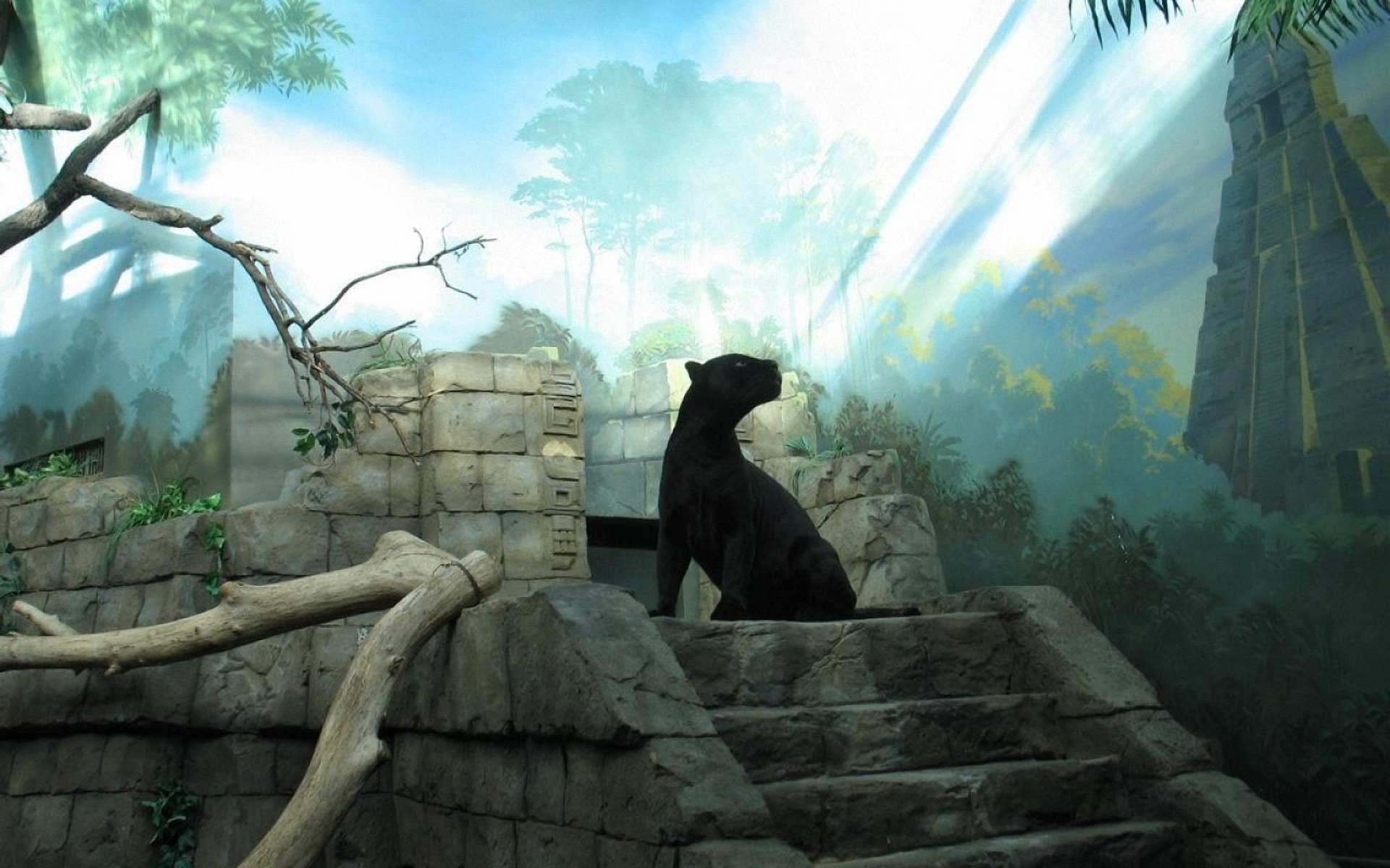 Скачать обои для рабочего стола Пантера на ступеньках и фото