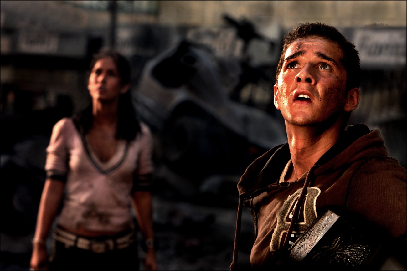 Похожие обои на Парень и девушка испуганно смотрят вверх: