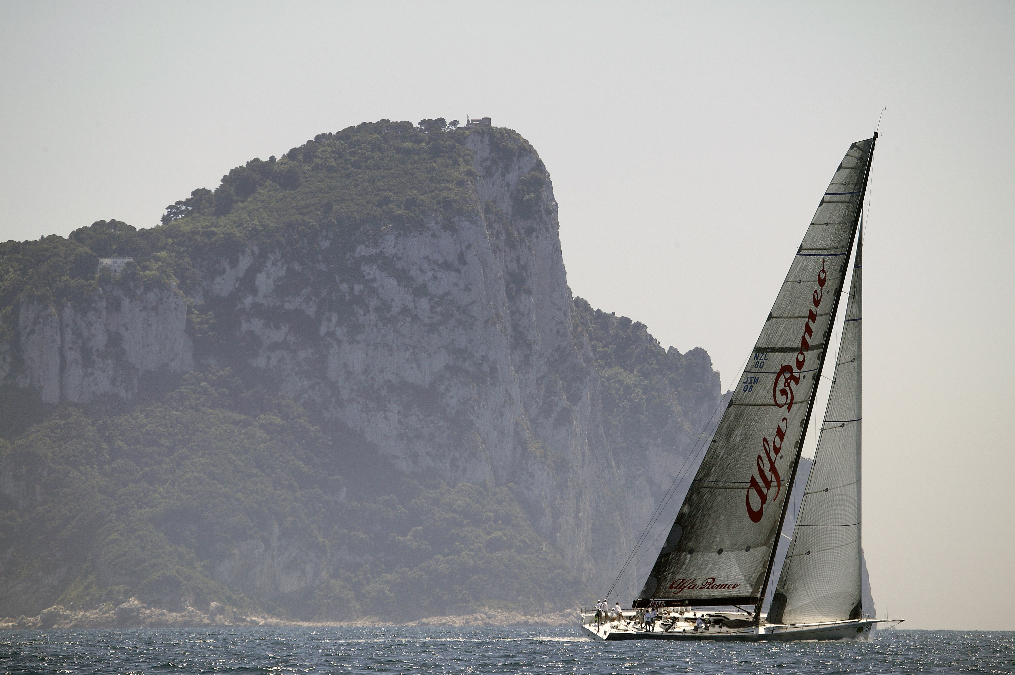 Скачать обои для рабочего стола Парусник на фоне гор и фото
