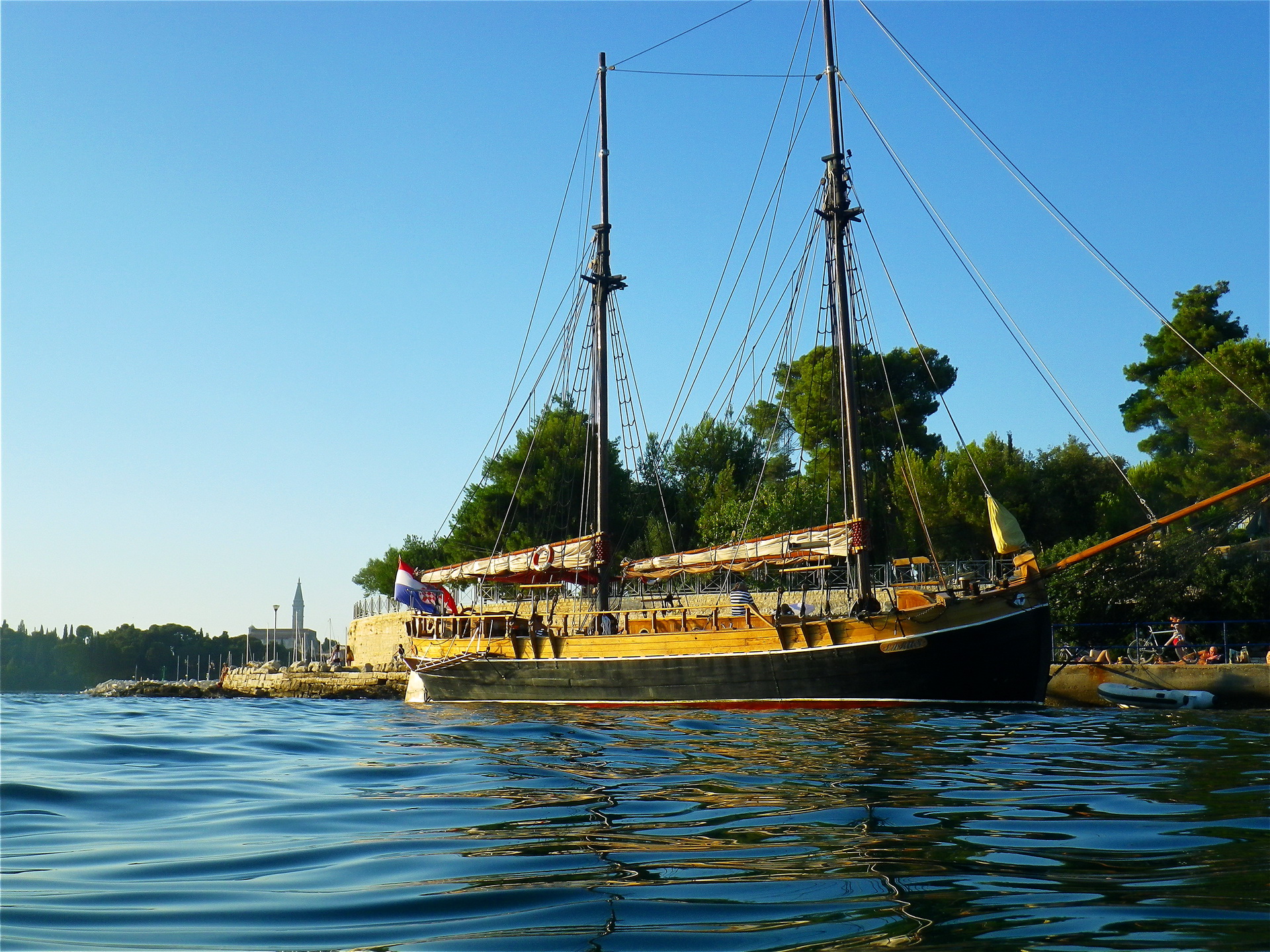 Скачать обои для рабочего стола Парусник на приколe в речных водах и фото